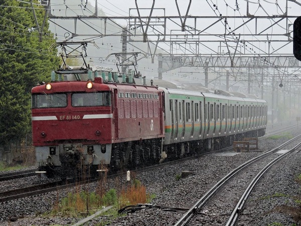 降雨の中、EF81 140に牽引され所属先までラストスパート。