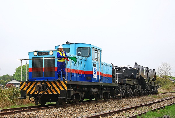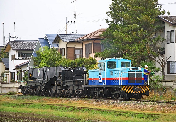 石橋良章スイッチャーに牽引されるシキ801 B2。‘25.4.25 東光高岳専用線(2点共) 2025年4月25日、梁の交換作業を終えたシキ801 B2が、小山市の東光高岳から宇都宮貨物ターミナルへ向けて回送された。■関連記事◆【特大貨物】大物車シキ800形式が積車状態で北海道上陸P:原澤昭浩