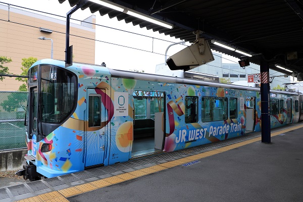 大阪・関西万博の2025年4月13日開幕に合わせて、「JR WEST Parade Ttrain」が運行開始した。ダイヤ改正で設定された新大阪から桜島駅への直通臨時列車「エキスポライナー」に4月13日から充当されている。