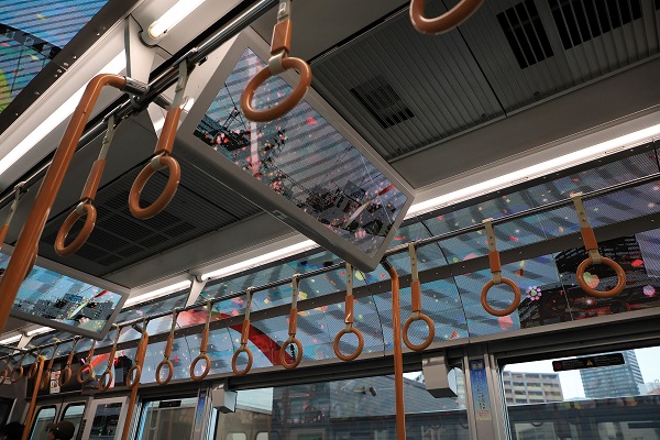 車内は窓の上にLEDでディスプレイが設置され、楽しいアニメーションで気分はわくわく。