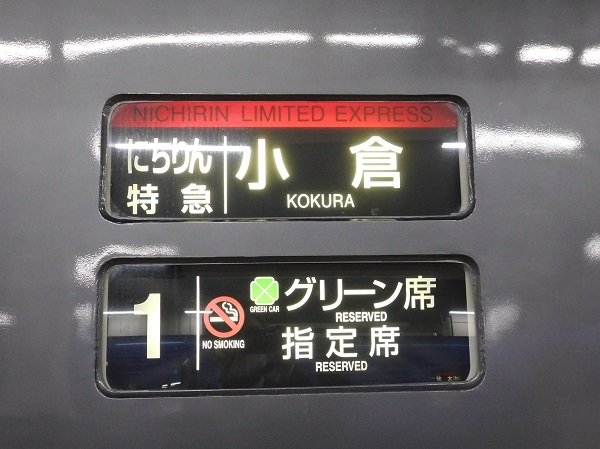「にちりん 小倉行き」の方向幕を見ることができるのは大変貴重である。