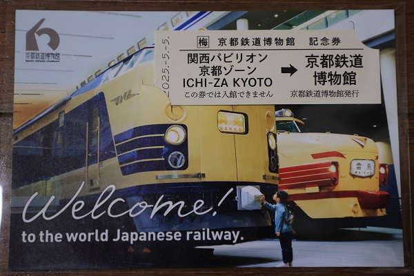 記念券は、関西パビリオンから京都鉄道博物館行きの硬券。