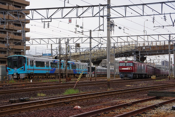 既報の先月下旬の動きと同様、日本海縦貫線におけるEH500形牽引の貨物輸送の試験を行ったものと思われ、富山貨物ターミナル~金沢貨物ターミナル間を往復で自走した模様。