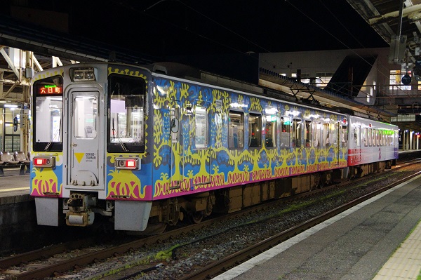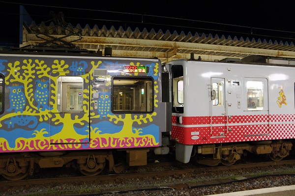 車両正面を中心に左右のラッピングの背景色は、黒と白で雰囲気が異なる。デザインは、コスチューム・アーティストの、ひびのこづえさんが担当している。懐古談だが2018年、当方でDAICHI号デビュー時の記事を纏めていた際、ラッピングとはいえ「アート作品」の意味合いを強く感じ、写真の扱いについて当時「大地の芸術祭」の事務局にお伺いをしたことがある。