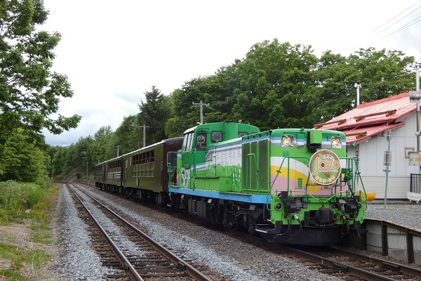 富良野線で運行される観光列車「富良野・美瑛ノロッコ号」が2025年6月8・9日に引き続き、6月14日~8月11日の毎日、旭川~美瑛~富良野間で運行されている。DE15がオハフ51型改造の展望客車3両を牽引・推進する形態で、自由席車2両については運賃のみで、道中の田園・山岳風景を堪能しながら客車列車の旅を経験できる貴重な存在となっている。