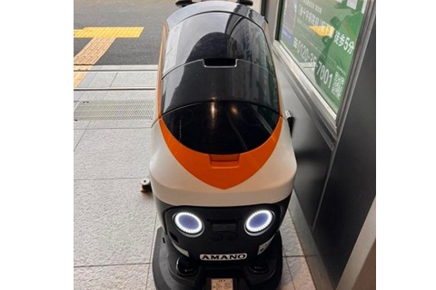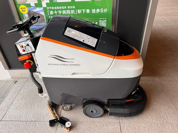中村年秀掃除ロボット正面。こちらは側面。‘25.6.21 予讃線 松山(2点共) 2025年6月末で松山駅が高架化されて9ヶ月になる。改札口付近では、8600系似の無人お掃除ロボットが活躍している。おかげさまで、床は綺麗だ。■関連記事◆【三代目新松山駅開業】一夜城ならぬ「一夜駅」となった松山駅P:植松 繁