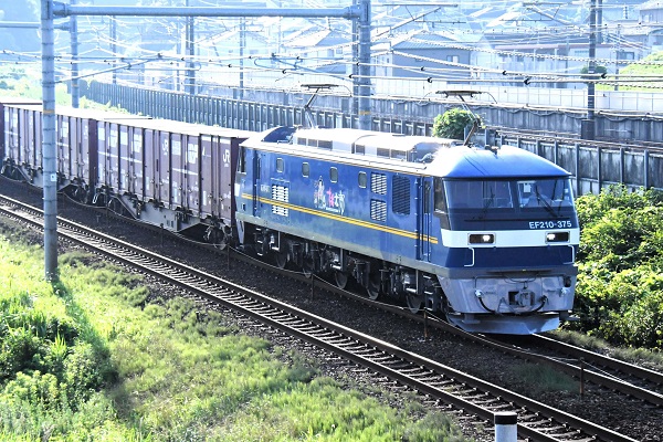 大谷真弘新鶴見信号場~名古屋貨物ターミナル間で5091列車を牽引。‘25.6.29 東海道本線 菊川~掛川(2点共) 2025年6月29日、川崎車両で6月2日に製造出場し、新鶴見機関区に配属された新鋭のEF210-375が、仙台貨物ターミナル発名古屋貨物ターミナル行きの5091列車の新鶴見信号場~名古屋貨物ターミナル間(仙台貨物ターミナル~新鶴見信号場間は4080列車)を日中に運行した。■関連記事◆【新鶴見配置見込み】EF210-375の甲種輸送P:石田哲彦