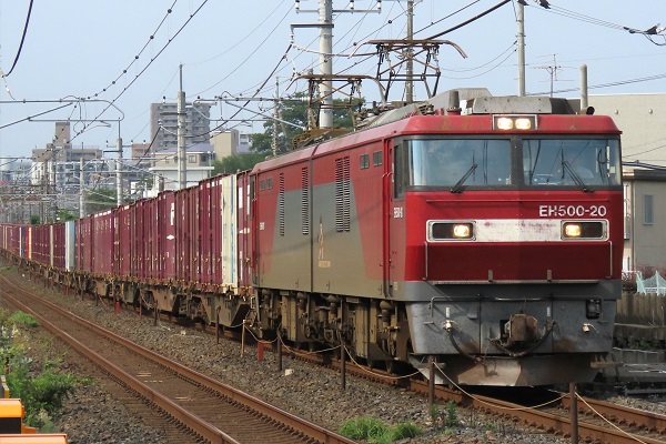 藤倉顕治エスコートはEH500-20。牽引機の金太郎と調和したカラーの「赤パロマコンテナ」 。‘25.7.5 東北本線 土呂~東大宮(2点共) 2025年7月5日、東北本線の3081列車(名古屋貨物ターミナル~札幌貨物ターミナル)に、人気の「赤パロマコンテナ」が搭載されていた。■関連記事◆【レア感満載】高崎線2088列車にONE(OCEAN NETWORK EXPRESS)コンテナが搭載P:藤倉顕治