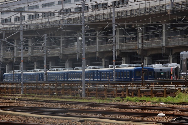 網干総合車両所宮原支所の非電化の留置線は、このところしばらく空っぽの状態が続いていたが、2025年7月6日、12系が5両連結して留置されているのが確認できた。12系は、2両と3両に分割して網干総合車両所に入場したため、5両編成で姿を見せたのは約5ヶ月ぶりだ。