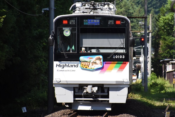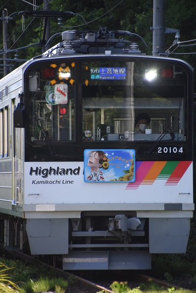 尾名高大蔵「ゆかたでおでかけ」ヘッドマーク。‘25.7.13 アルピコ交通 渕東~新島々(3点共) アルピコ交通では、20103F編成に夏らしく「ゆかたでおでかけ」のヘッドマークを掲出して運転している。■関連記事◆【アルピコ交通】2代目「なぎさTRAIN」に「RAIL CAST つなぐ鉄路」のHMを掲出P:尾名高大蔵