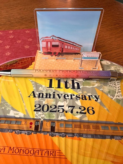 中村年秀車内限定販売のアクリルスタンドとボールペン。‘25.7.25 伊予灘ものがたり車内 「伊予灘ものがたり」運行11周年を記念して、車内でアクリルスタンドとボールペンが販売中だ。模型のジオラマにお似合かもしれない。■関連記事◆【伊予灘ものがたり季節限定のカクテル&スイーツ】いつ食べるの?今しかないでしょP:植松 繁