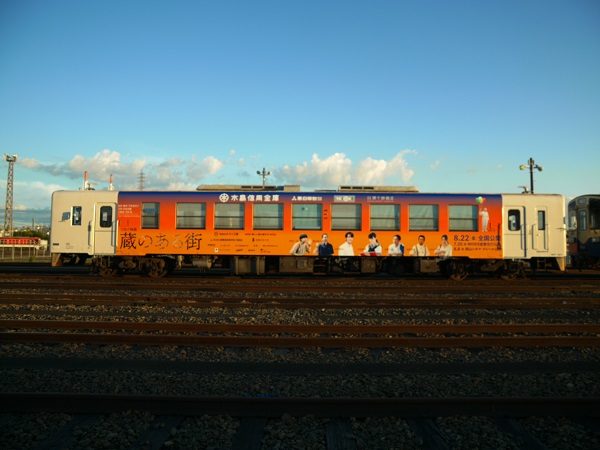 水島臨海鉄道では、2025年7月24日〜2026年4月30日まで、岡山県倉敷市を舞台とした映画、「蔵のある街」の公開記念としてラッピング列車を運転されることになり、ロケ地に倉敷市内と水島臨海鉄道選出され、7月24日に倉敷市駅で、倉敷市長と映画関係者を招いて出発式が行われた。