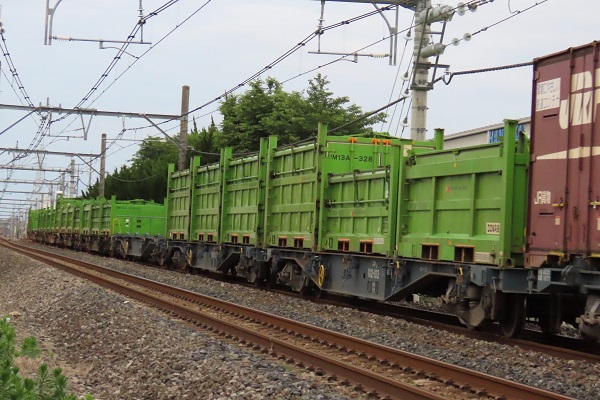 高崎線2091列車にDOWAエコシステム・日本製紙共同所有コンテナが搭載。DOWA通運は21基もの無蓋コンテナを搭載