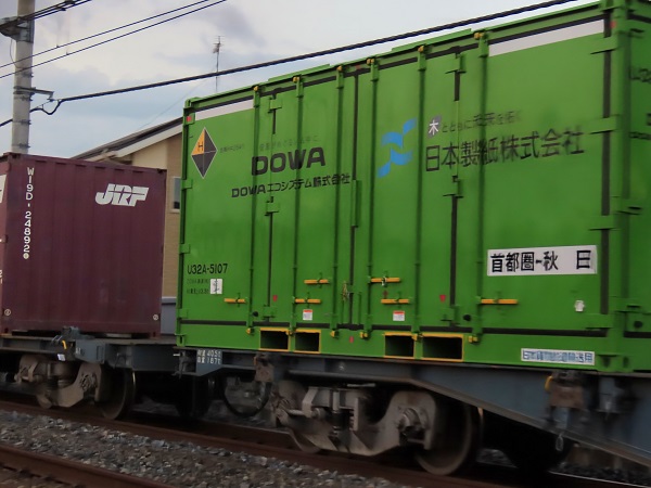 2025年8月8日に運転の高崎線2091列車(墨田川~大館)に、DOWAホールディングスの関連会社で、2025年6月より日本製紙と業務提携したDOWAエコシステムとの共同所有コンテナU32形コンテナが搭載されていた。