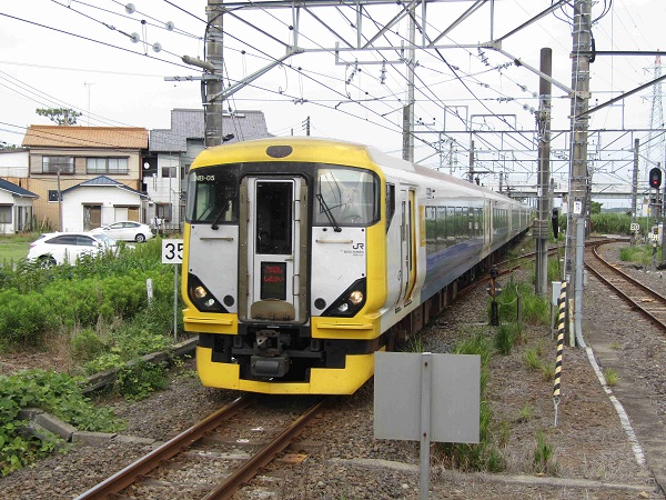JR東日本は、2025年8月9日、総武本線の東京~銚子間の臨時特急「しおさい81・82」号に、幕張車両センター所属のE257系500番代マリNB-05編成5両を充当した。
