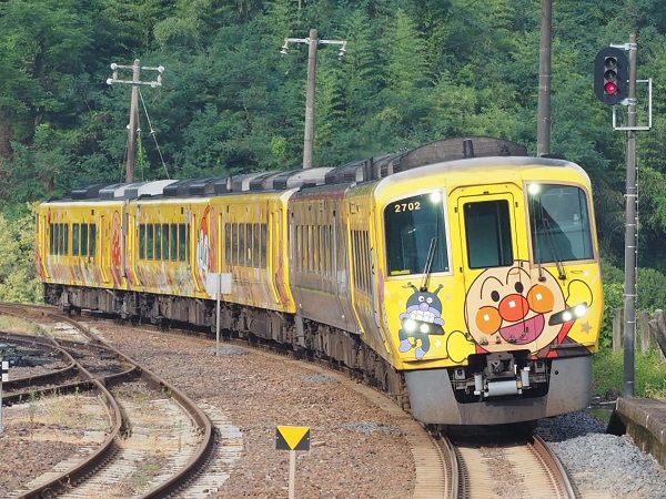植松 繁4号車に一般塗装車を増結して5両編成で運転されている。‘25.8.12 土讃線 坪尻~讃岐財田 所定では2700系3両もしくは4両で運転されている土讃線特急「南風」だが、夏季多客期輸送時には5両編成に増結している。「アンパンマン列車」も一般塗装車と手を繋いで帰省客や観光客を笑顔にして運行されている。■関連記事◆【JR四国】あかいアンパンマンが1両だけはぐれちゃった…? 「南風」+「うずしお」の珍編成P:植松 繁