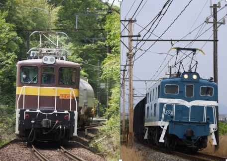 三岐鉄道と秩父鉄道のコラボ(写真手前がED454)。