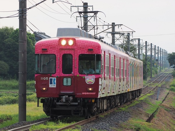 編成手前の1100形1105編成は、「うどん県×ヤドン号」ラッピング。
