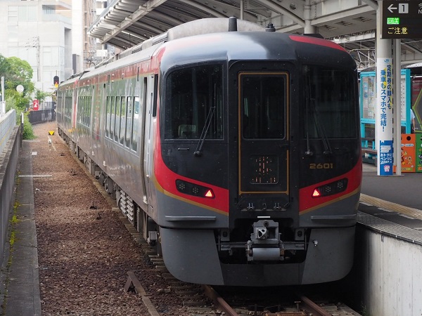 植松 繁虎の子の4両まんでがん繋いだ特急「うずしお」。‘25.8.13 高徳線 高松 讃岐の方言で「まんでがん」は「すべて」を意味する。高松運転所属の2600系特急型気動車は、諸事情で2両編成×2本、計4両しか製作されなかった。それを「まんでがん」繋いで2025年夏季多客期輸送にあたっていた。■関連記事◆【JR四国9月3連休多客期輸送】シャトル「いしづち22号」を2600系で運転P:植松 繁