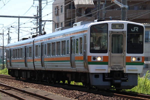 横田篤史猛暑の中、東海道線を快走する213系H13編成。‘25.8.31 東海道本線 尾張一宮~木曽川 2025年8月31日、大垣車両区所属213系H13編成を使用した団体臨時列車が名古屋~関ケ原~大垣~美濃赤坂~名古屋間で運転された。 この団体臨時列車は稲沢の貨物線を走行し、関ケ原や美濃赤坂に乗り入れるなど、珍しい光景が繰り広げられた。■関連記事◆「数字順の奇跡」213系5000番代(大垣車)H13編成とH14編成の並びが実現P:田部井毅大