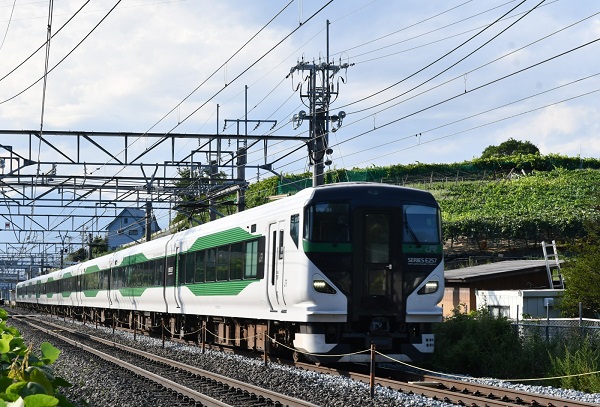 尾名高大蔵OM92編成の「あずさ71号」。‘25.9.6 篠ノ井線 平田~南松本 2025年9月6日、E257系5000番代OM92編成の「あずさ71号」が運転された。■関連記事◆E257系5000番代OM91編成の「あずさ82号」を運転P:尾名高大蔵