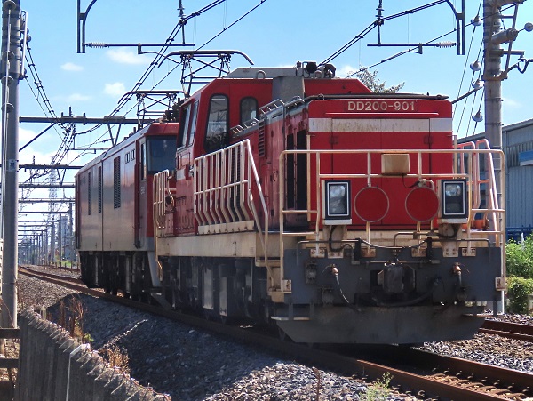 藤倉顕治EH500-28にエスコートされて愛知機関区へ返却されるDD200-901。‘25.9.7 高崎線 鴻巣~北本(2点共) 2025年9月7日の高崎線8764列車にて、新潟貨物ターミナルで入換に従事していたDD200-901が無動力回送された。■関連記事◆DD200-901の無動力回送を、EH500-7が代走牽引P:奈良仁一郞