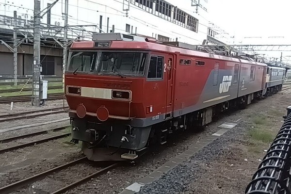 奈良仁一郎EF65 2083に牽引され大宮に到着したEH500-68。‘25.9.9 東北本線 大宮 2025年9月9日、門司機関区所属のEH500-68が検査のため大宮車両所へ入場した。なお、回送は無動力で、新鶴見信号場~大宮間を新鶴見機関区所属のEF65 2083が担当した。■関連記事◆門司機関区のEH500-70が高崎線臨時8765列車で無動力回送P:奈良仁一郎
