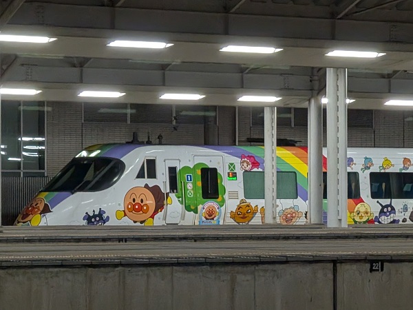 回送で高松駅に到着した8000系「アンパンマン列車」。
