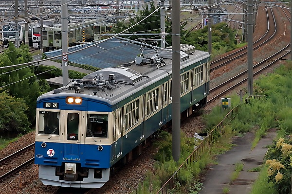 2024年5月、田島ルーフィング施工の横須賀色(スカ色)ラッピングが施されたえちごトキめき鉄道ET127系V8編成。8月初めに長野総合車両センターに入場、末に試運転、9月初め出場が予想された。しかし、9月3日豪雨で直江津駅が冠水、全面運休の影響で出場は9日となった。