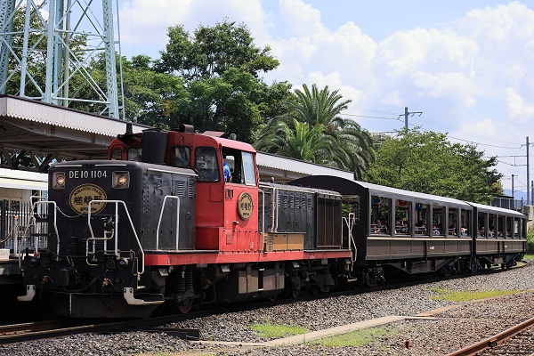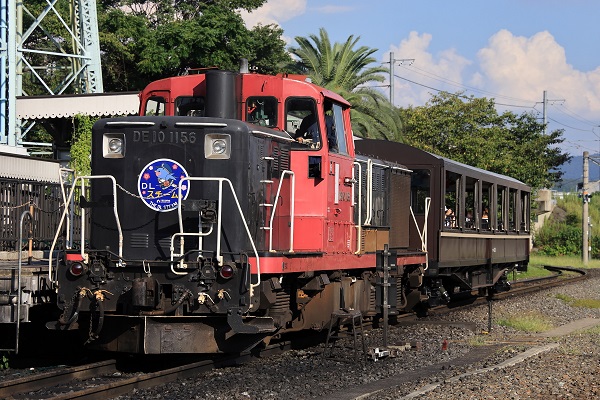 牽引機は、梅小路運転区所属の嵯峨野観光鉄道色DE10 1156で、「DLスチーム号」のヘッドマークを掲出。なお、客車は1両が点検中のためオハテ31のみのかわいい編成だった。