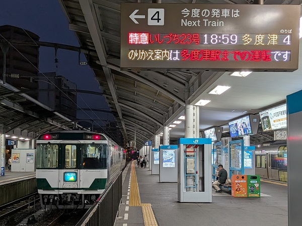 植松 繁かつて高松駅を発着していた頃の光景が令和に蘇る。‘25.9.23 予讃線 高松(2点共) 2025年9月23日、飛び石連休最終日の「いしづち23号」は、多度津行きとして高松運転所所属185系復刻国鉄色2両(キハ185-17+キハ185-18)で運転された。■関連記事◆【JR四国9月3連休多客期輸送】国鉄色185系がシャトル「いしづち号」を代走P:植松 繁