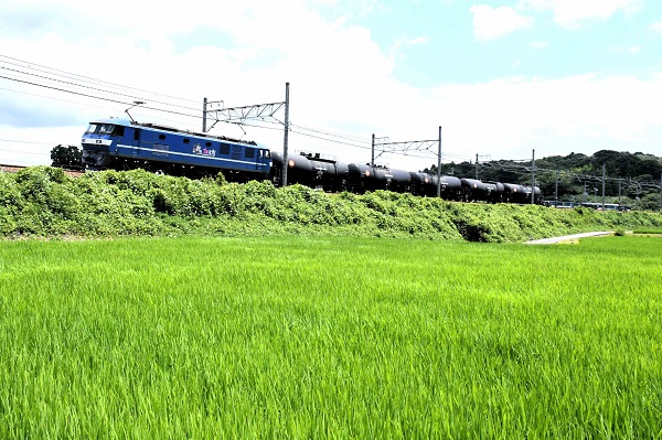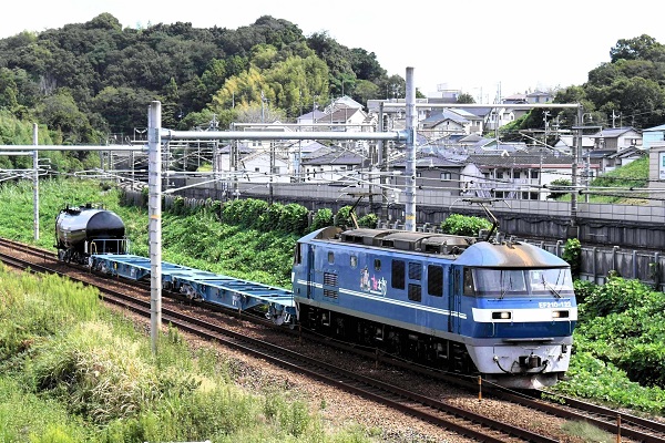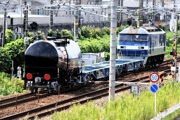 新鶴見機関区所属のEF210-122が、コキ105形2両とタキ43000形1両を牽引して西下した。