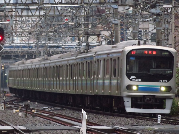 今後数を減らしていくとみられる70-000形。JR東日本209系ベースだが、菱形パンタグラフで都心を走る車両も数少なく貴重となった。