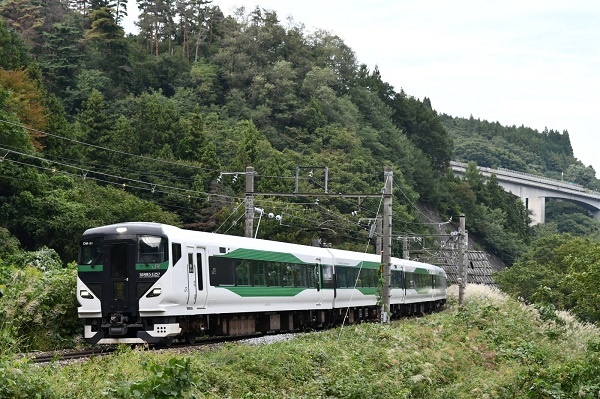 尾名高大蔵OM93編成の「あずさ82号」の送り込み回送。旧羽尾信号場跡が窺える。「あずさ84号」の送り込み回送はOM91編成だ。‘25.9.28 篠ノ井線 姨捨~冠着(2点共) 2025年9月28日、E257系5000番代の「あずさ82号・84号」の送り込み回送が、長野総合車両センター~松本間で実施された。■関連記事◆E257系5000番代の「あずさ71号」と「あずさ83号」を運転P:尾名高大蔵