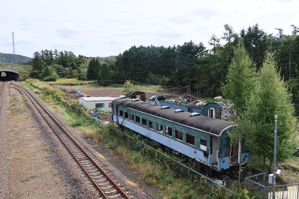 佐藤直幸元「C62ニセコ号」の客車が解体。‘25.10.7 石勝線 川端(2点共) 2025年10月7日、パークゴルフ場の受付・休憩所として利用されていた元「C62ニセコ号」の客車2両は、同ゴルフ場の廃止とともに放置され、無惨な姿を晒していたが、とうとう解体されることになった。大変残念なことだ。【編集部追記】この客車はスハフ44 11と27。1996年に廃車になった後、この場所に置かれていた。■関連記事◆【JR北】苗穂工場一般公開P:佐々木裕治