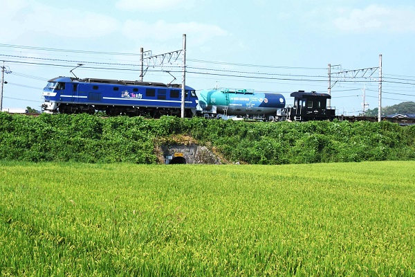 機関車の次位にタキ1000-5、最後部近くにタキ1000-1を組成。EF210-118が、8884列車をエスコートした。