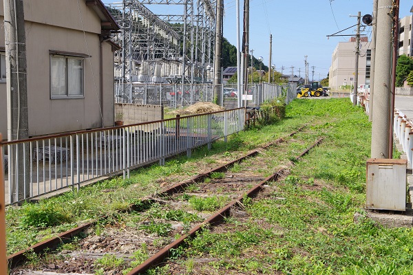 しかし、七ヶ用水を渡る橋梁の先付近から旧中鶴来駅跡間の一部で土木工事が進められていて、線路や路盤、架線柱が撤去されたのを確認できた。これまでは生活道路の拡幅で僅かに撤去されていたが、範囲が大幅に伸びた印象だ。現場では、綺麗な砂利が敷かれたり、重機移動の土台か鉄板が長く敷かれていた。