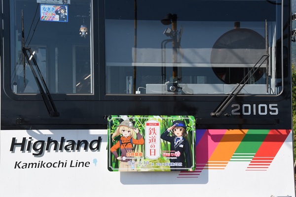 アルピコ交通では、鉄道の日に合わせて、2代目「なぎさTRAIN」に、前後で異なるヘッドマークが掲出された。渕東なぎさ×白骨温泉の温泉娘 『白骨朋依(しらほね まい)』とのコラボによるHMとなっている。