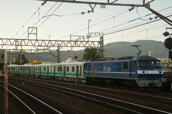 なお、川車~吹田間は愛知機関区所属のDD200-25、吹田以降は新鶴見機関区所属のEF210-132がそれぞれ牽引した。
