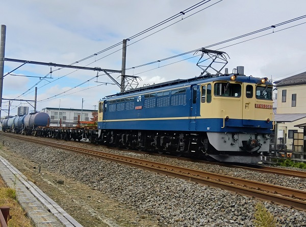 藤倉顕治EF210-125に牽引されて新鶴見へ無動力回送されるEF65 2096。‘25.10.25 高崎線 鴻巣~北本 2025年10月23日に、八高線用の新型車両HB-E220系の甲種輸送に使われたEF65 2096が、10月24日の高崎線8764列車で、EF210-125に牽引されて無動力回送された。■関連記事◆高崎線臨時8764列車をEF65 2085が代走で牽引P:奈良仁一郎