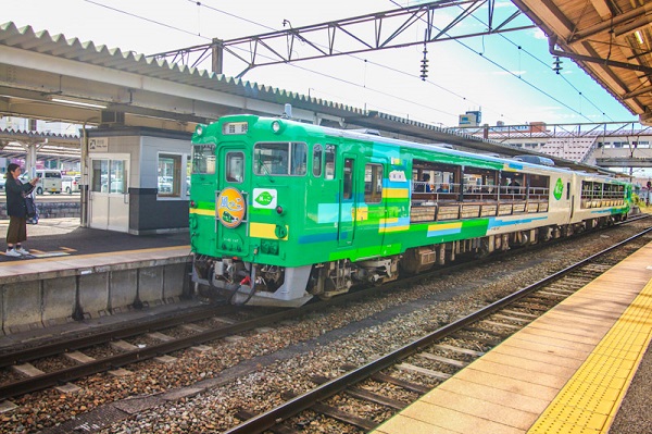 矢吹健児秋の只見線満喫に向けて出発。‘25.10.18 只見線 会津若松(3点共) JR東日本の観光列車であるキハ48形トロッコ列車「びゅうコースター風っこ」を使用した期間限定の「風っこ只見線満喫号」が、2025年10月4日から行なっていた会津若松〜只見間の一往復運用を、10月19日で終了した。 なお、10月18日には、会津観光に合わせ、会津若松駅構内で出発準備の様子を見ることができた。■関連記事◆【仙石線用】E131系N3編成が配給回送P:藤倉顕治