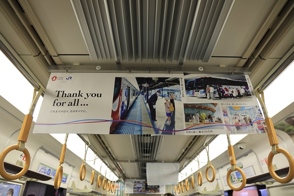 JR西日本では、万博の思い出のシーンのポスター、桜島線で来場者を運んだ「パレードトレイン」の写真を掲示している。