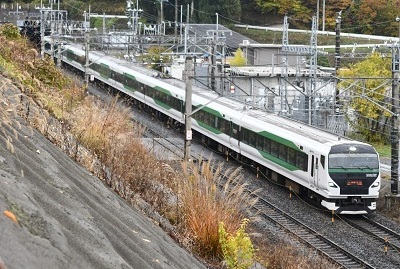 尾名高大蔵E257系5000番代OM91編成の「あずさ79号」。‘25.11.9 中央本線 みどり湖 2025年11月9日、E257系5000番代の臨時「あずさ79号」「あずさ74号」が運転された。そのうちの、あずさ74号は送り込み回送をされた。■関連記事◆E257系5000番代の「あずさ」2本と返却回送P:尾名高大蔵