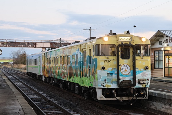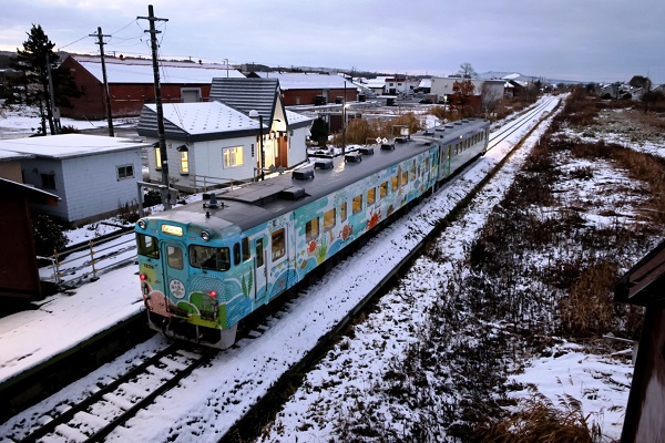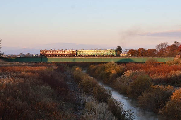 佐藤直幸「道北流氷の恵み」+キハ150。‘25.11.4 室蘭本線 志文「道東森の恵み」+「紫水」。‘25.11.4 室蘭本線 栗沢~志文キハ150+「道南海の恵み」。‘25.11.12 室蘭本線 栗沢 室蘭本線では所定では苫小牧運転所のキハ150が充当されるのだが、ここ最近は同形式の検査等の事情でキハ40が充当されることが増えているようだ。■関連記事◆室蘭本線の普通列車運用に国鉄一般色のキハ40 1759が再び運用P:佐藤直幸