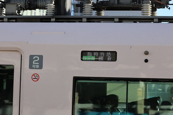 E657系の側面行先表示は、「臨時特急 鎌倉」行を表示していた。