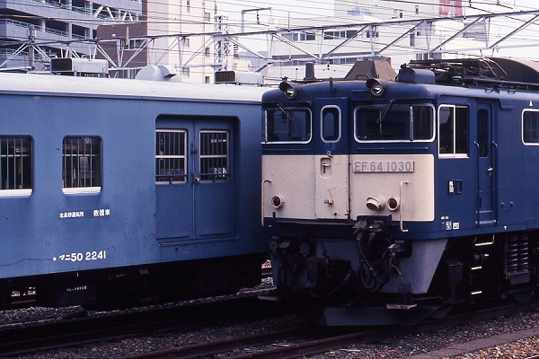 【参考画像】1990年6月に最後に同車が、救援車として使用されていた姿をお目にかけたい。JRの長ナノに3両のマニ50が継承された中の1両で、他の2両はマザーグーストレイン用だった。EF64 1030とは2025年10月、DD51 842配給で訪れた同機と35年ぶりの再会をしている。