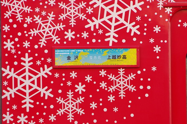 サイドボードは団臨オリジナルで、往路の「金沢~上越妙高」(写真)と復路の「金沢~直江津」の2種類が掲出された。