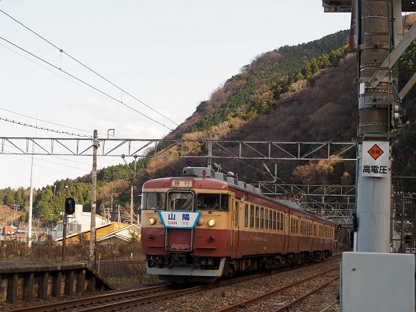 12月13日には、山陽・九州タイプの「山陽」ヘッドマークが取り付けられ、好天ということもあり、沿線には多くのレイル・ファンが詰めかけた。