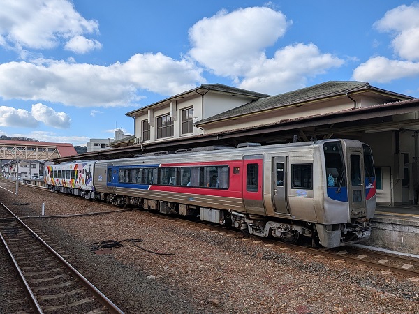 植松 繁松山寄り車両(写真手前)が一般塗装車両と差し替えられている‘25.12.15 予讃線 八幡浜 2025年12月15日、八幡浜駅で予讃線特急「宇和海」アンパンマン列車が、一般塗装車両と混結で運転されていた。11月30日とは逆に松山寄りの車両が一般塗装車両だった。■関連記事◆「半パンマン」でがんばる特急「宇和海」P:植松 繁