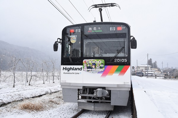 尾名高大蔵‘26.1.2 アルピコ交通 波田~渕東ヘッドマークは前後で異なる。‘26.1.2 アルピコ交通 渕東 アルピコ交通では、2026年1月1日から、信越地域鉄道事業者5 社(長野電鉄、上田電鉄、しなの鉄道、北越急行、アルピコ交通)と連携して、各社の鉄道むすめの「謹賀新年」のヘッドマークを掲出して運転した。■関連記事◆【アルピコ交通】2代目「なぎさTRAIN」に「鉄道の日」のHMを掲出P:尾名高大蔵